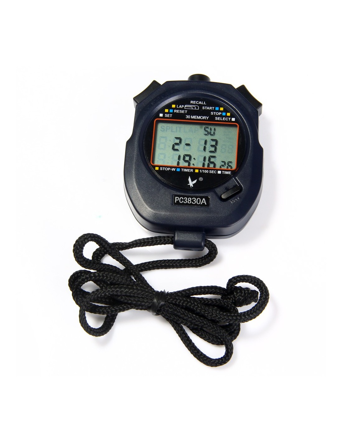 Cronometru digital realizat din plastic ABS rezistent, ideal pentru antrenamente, competitii si utilizare zilnica. Permite memorarea a pana la 30 de ture si afiseaza ora, data, luna si anul pe ecran. Ofera optiune de afisare in format 12h sau 24h si masoara timpul cu precizie de 1/100 secunda, pana la 10 ore. Include functii utile precum cronometru si numaratoare inversa. Functioneaza cu baterie Lithium CR2032 inclusa.